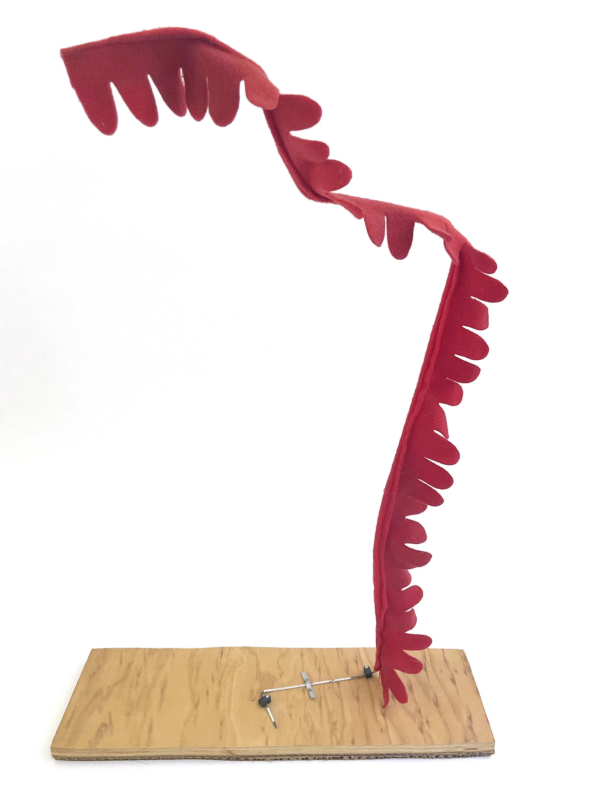 Synthetic fabric, wire, thread. Sizes vary, each approx 20” tall.