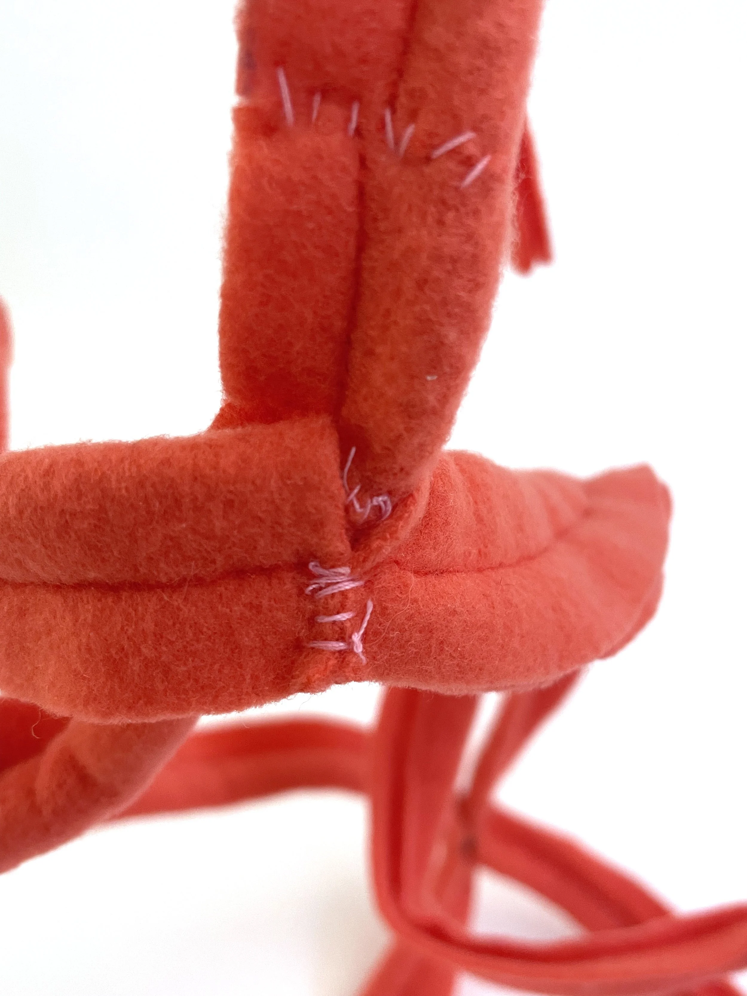 Pink synthetic fleece, wire, thread. Size vary, approx 8” to 18” tall.